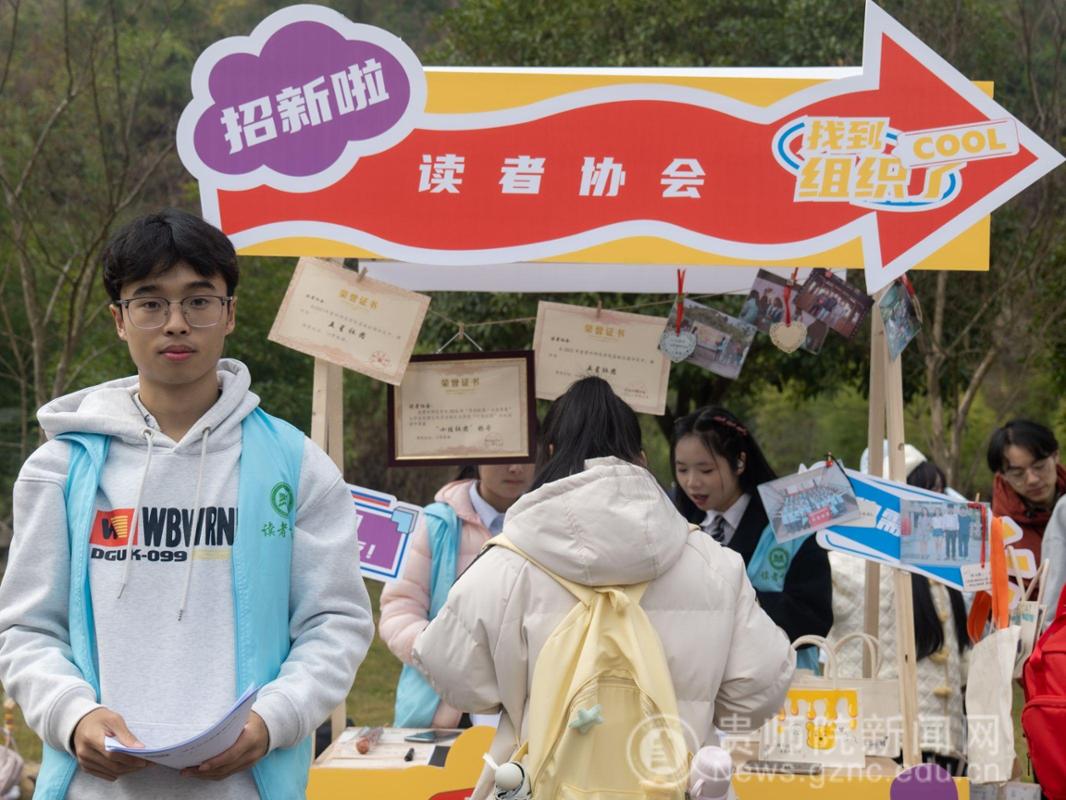 2025年10月23日,在校团委及社管中心统一安排部署下,读者协会在鉴湖旁开展了2025年度招新活动,迎接新成员的到来,增添社团活力。